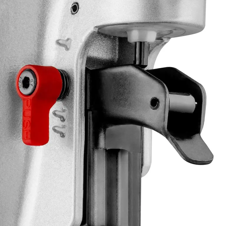این دستگاه از **مکانیزم بادی (پنوماتیک)** با فشار کاری 60 تا 100 PSI (4 تا 7 بار) استفاده می‌کند و مجهز به خشاب آنادایز شده با ظرفیت **80 عدد میخ** است.